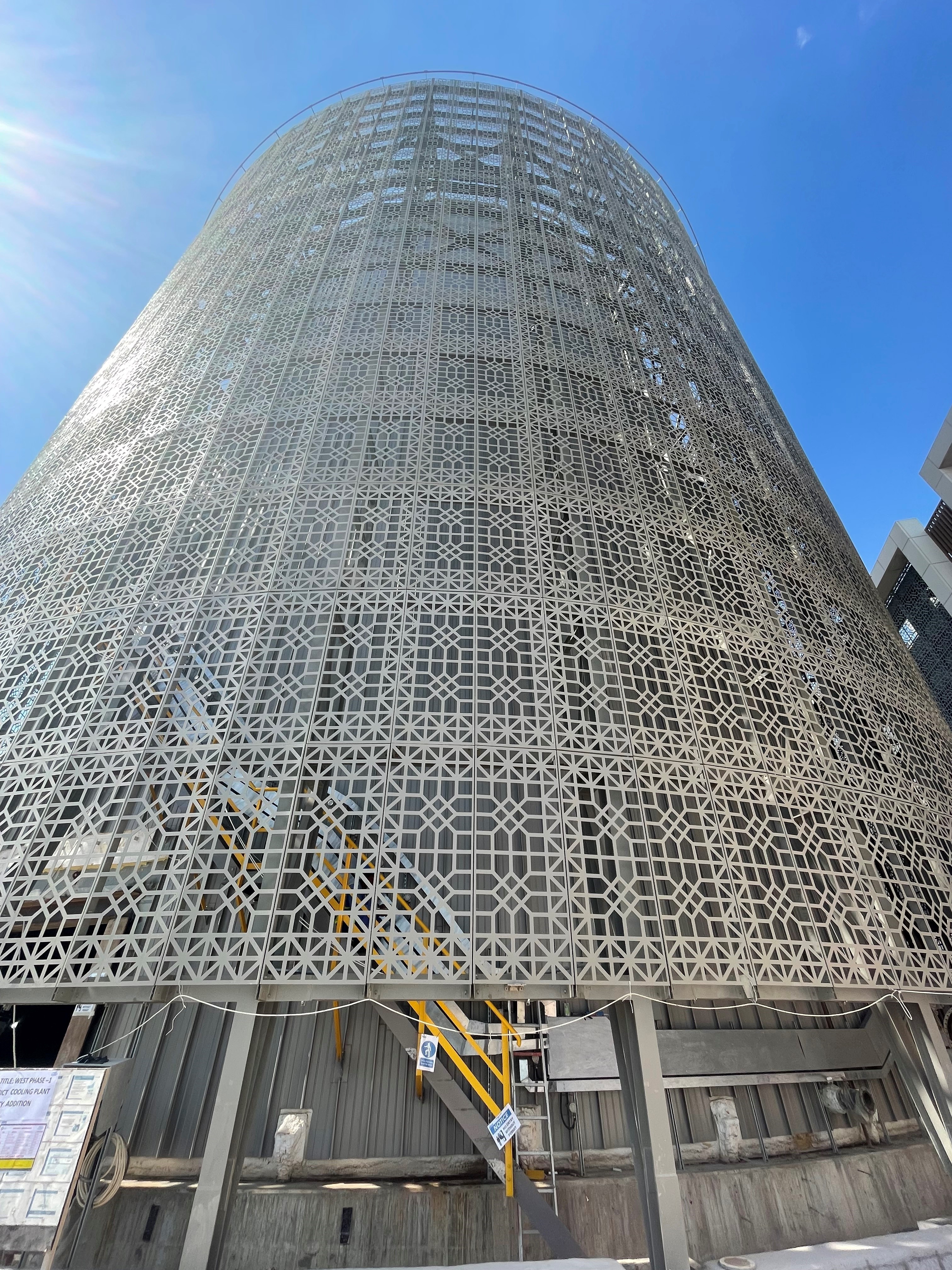 This architectural and engineering design project reimagines a high-performance hospital campus by integrating advanced facade technologies with a sophisticated, sustainable cooling system. The proposal leverages metal faƧade innovation, district cooling infrastructure, and air-cooled chillers to deliver a resilient, energy-efficient medical environment built for future growth.Drawing from modern architectural trends, the hospital building shows a precision-engineered metal faƧade, combining both aesthetic refinement and functional performance. The use of metal panels ensures durability, visual uniformity, and an efficient thermal envelopeāsupporting the buildingās long-term maintenance goals while also delivering a clean and contemporary visual identity.Supporting this envelope, the cooling strategy is anchored by a district cooling plant, similar to large-scale systems used in transformative infrastructure projects.