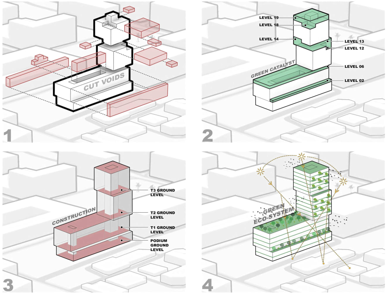 The architectural composition blends public and private learning realms, forming a hybrid ecosystem where circulation pathways, outdoor terraces, shared commons, and learning pods work together to create a holistic educational environment. These spatial layers foster meaningful interaction while maintaining the ability to create protective boundaries when required.Ultimately, the project positions the school as a living system—one that grows, adapts, and evolves in response to its users and context. By combining ecological thinking, mental-wellness principles, and hybrid construction methodologies, the design redefines what contemporary educational architecture can be in a post-pandemic society: resilient, nurturing, and deeply connected to human needs.