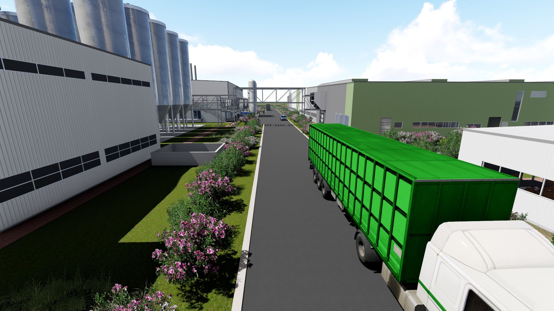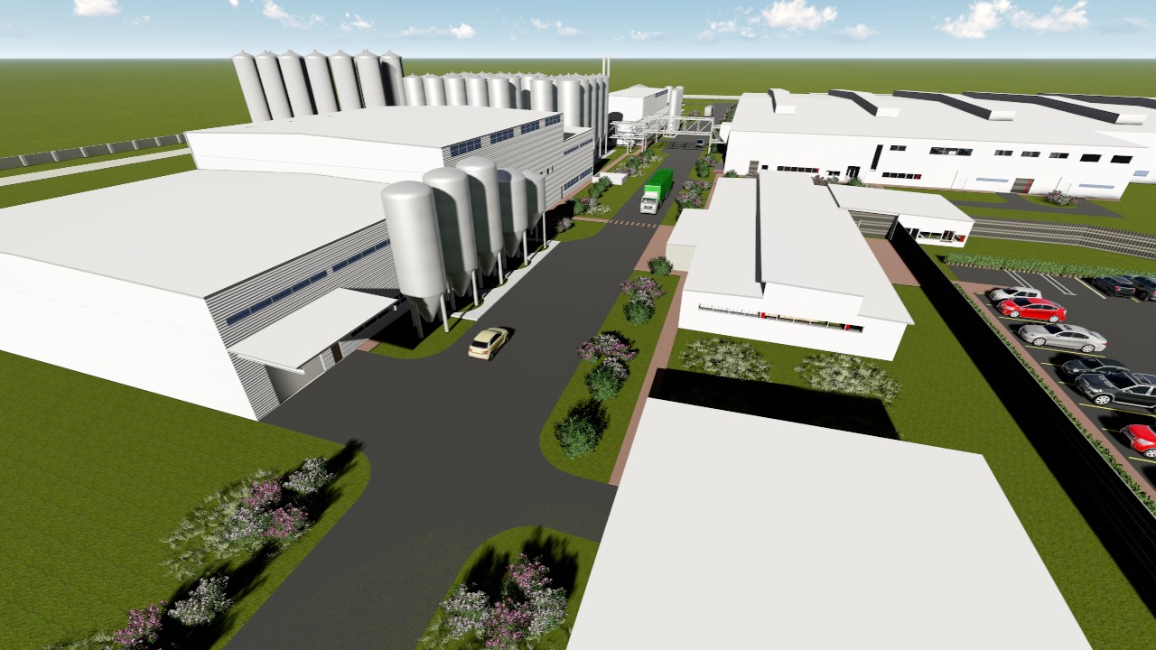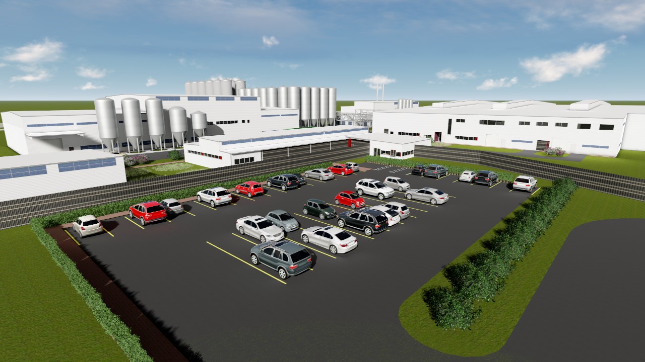 The axonometric site plan illustrates a well-organized campus emphasizing functional zoning and circulation. Wide internal roads support heavy transport movement, while pedestrian and administrative areas remain safely separated. Support buildingsāsuch as laboratories, offices, and servicesāare positioned for operational oversight and efficient access to the main production lines. Landscaping buffers and structured open spaces contribute to a clean, orderly industrial environment.The inclusion of designated outdoor gathering zones, as seen in the site photograph, allows for staff activities and events, adding a human-centered element to the industrial setting and reinforcing Heinekenās brand identity.Overall, the project achieves a strong balance between technical performance, environmental consideration, and corporate presence, resulting in a modern, scalable brewery complex that strengthens Mozambiqueās growing manufacturing sector.